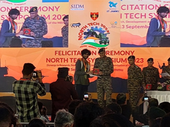 While explaining our invention to the Hon’ble Defence Minister Rajnath Singh at the North Tech Symposium held at IIT Jammu on 9th September 2023