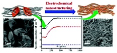 Electrochemical, top-down nanostructured pseudocapacitive electrode for enhanced specific capacitance and cycling efficiency