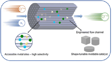Engineering the site-accessibility for robust, continuous flow-through hydrogenation of styrene