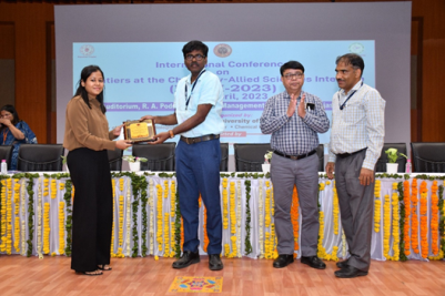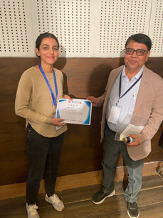 Sanjita Moharana receiving the Best Oral Presentation Award at the 'International Conference on Frontiers at the Chemistry-Allied Sciences Interface (FCASI-2023)" organized by the Department of Chemistry, University of Rajasthan, Jaipur, India during April 20-21, 2023..
