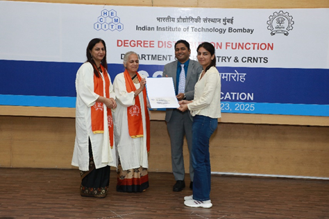 Gulenur N. Khatun receiving the Best Poster Award at the International Conference Frontiers in Sustainable Organic Synthesis and Chemical Biology 2025 held in CSIR-Indian Institute of Chemical Technology, Hyderabad, India during October 13-14, 2025." for the year 2024-2025.
