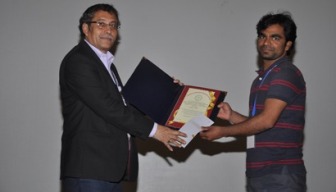 Mr. Venkati Beti receiving the Prof. G. Mehta "Best Poster Award" at the 17TH National Symposium in Chemistry of the Chemical Research Society of India, organized by National Chemical Laboratory, Pune, February 7-9, 2015.